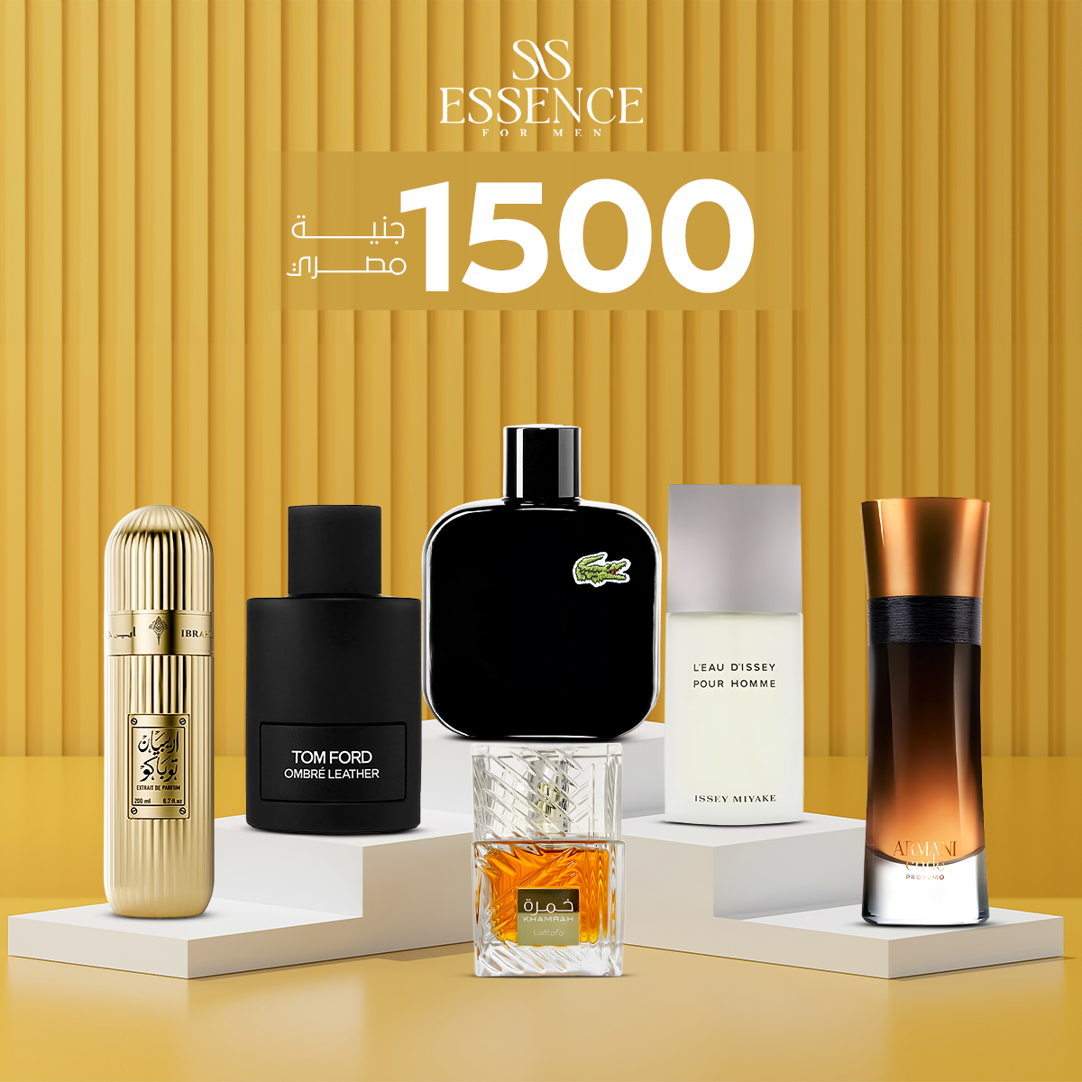خمرة 40 ملي + أرابيان توباكو إبراهيم القرشي + لاكوست بلاك + عنبر ليزر + أرماني كود بارفوم + أي سي مياكي | 6 عطور فاخرة